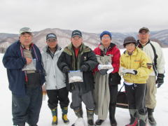 天候:雪 水深:約5~8m エサ:赤虫・サシ・ラビット ![]() ![]() 高橋 様(宮城県仙台市)旦那様 374 匹 奥様 228 匹 ![]() ![]() 五十嵐 様(郡山市) 347 匹 ![]() ![]() 佐藤 様(郡山市) 253 匹 ![]() ![]() 渡部 様(金山町) 198 匹 |