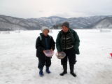 天候:雪 水深:約6~8m エサ:赤虫・サシ・ラビット ![]() ![]() ![]() 渡部 様(金山町) 559 匹 ![]() ![]() 鈴木 様(東京都世田谷区) 209 匹 小黒 様( 〃 ) 102 匹 角田 様( 〃 ) 43 匹 |