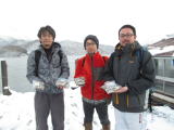 天候:雪 水深:約5~8m エサ:赤虫・サシ・ラビット ![]() ![]() 渡部 様(金山町) 150 匹 佐藤 様(福島市)旦那様 130 匹 奥様 92 匹 ![]() ![]() 小林 様(須賀川市) 114 匹 |