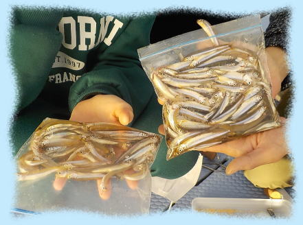 | 令和 7年 3月 21日(金):くもり 水深:約7~10m エサ:赤虫・サシ ![]() ![]() 松田 様(千葉市) 301 匹 ![]() ![]() 渡部 様(金山町) 252 匹 ![]() ![]() タケダ 様(山形県) 200 匹 ![]() ![]() 塙 様(日立市) 142 匹 ![]() ![]() 松野 様(白石市) 105 匹 …続く♪ |