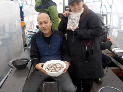 | 令和 7年 11月 20日(木):晴れ 水深:約10~12m エサ:赤虫・サシ ![]() ![]() 小島 様(新潟市)母 43 匹 娘 38 匹 父 24 匹 …続く♪ |