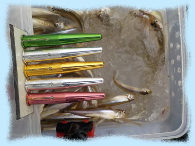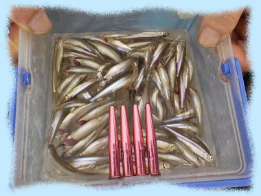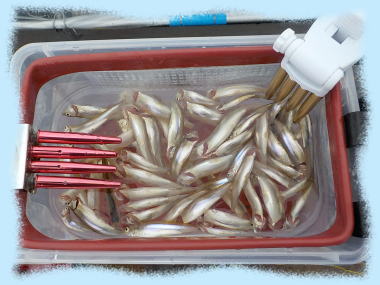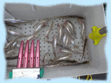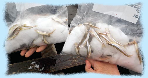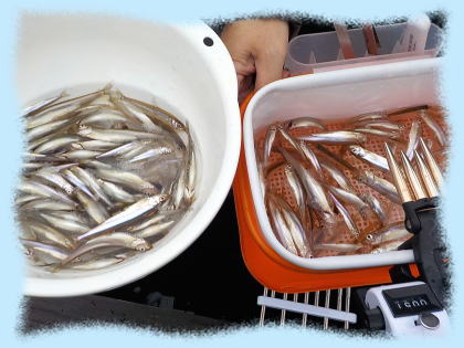 | 令和 7年 12月 17日(水):晴れのちくもり 水深:約10~12m エサ:赤虫・サシ ![]() ![]() 山井 様(新潟県) 95 匹 ![]() ![]() 菅野 様(相馬市) 45 匹 ![]() ![]() 黒住 様(宮城県) 36 匹(初わかさぎ♪) …続く♪ |
