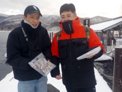| 令和 8年 1月 23日(金):雪 水深:約18~19m エサ:赤虫・サシ ![]() ![]() 佐藤 様(田村市) 45 匹 ![]() ![]() 近藤・合田・秋山 様(白河市) 128 匹(3名で♪) …続く♪ |