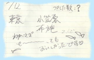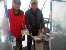 | 令和 8年 1月 14日(水):くもりのち晴れ 水深:約18~19m エサ:赤虫・サシ ![]() ![]() 小林 様(那須塩原市) 350 匹 ![]() ![]() 芳賀 様(柳津町) 308 匹 ![]() ![]() 井上 様(本宮市) 180 匹 ![]() ![]() 新田 様(会津若松市) 135 匹 ![]() ![]() 安倍 様(米沢市) 100 匹 高橋 様( 〃 ) 40 匹 …続く♪ |